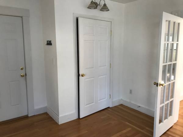 Attractive two-bedroom apartment that you will be happy to call home. Located on the second floor of a three-family building. Hardwood floors throughout except for ceramic tiled bathroom. Two large bedrooms, kitchen, bath, living room, dining room and three season front porch. Plenty of closet space. Large windows with southern exposure. Quiet smoke-free building with no pets. Coin operated washer and dry in basement. Off street parking for two cars in tandem. Large two-tiered yard with flower beds. Elementary school and town park located at end of street. First month's rent / last month's rent and security deposit due at move-in. Please call Kate at show contact info