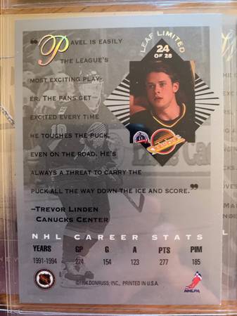 This is a 1994/1995 LEAF LIMITED INSERT SET-COMPLETE NHL HOCKEY card set. See the pictures-28 CARDS-GRETZKY-LEMIEUX-BRODEUR-ROY-MESSIER-FEDEROV-ROENICK-HASEK-BURE-many more These are a different card than the regular set. They can be picked up in Westminster or shipped (extra).