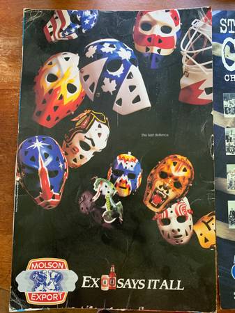 These are 2 different MOLSON BEER NHL HOCKEY POSTERS from Canada. They are all in nice shape-11" x 17" in size-$10 for the both together. See the pictures-the goalie mask poster I put on cardboard. They can be picked up in Westminster or shipped (extra).