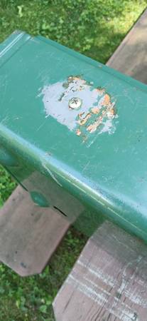 Coleman 425F 2 burner propane camp stove. It does have some surface rust. Converted for bottle propane. I couldn't locate the original fuel tank. Last time I remember it being used was bilzard of 1996. Manufacturing date is 7 / 84. Great shape for 41 years old.