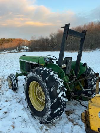 John Deere 2555 for sale. Tractor has the 8 speed transmission, 540 pto and 1 rear scv. 18.4-26 rear tires that are worn. Rear wheel weights, front weight bracket. New fuel pump and fresh oil/filters on the motor. Tractor runs out good starts easily in the cold.