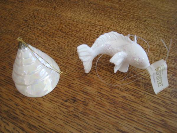 fine bone china oyster pearl pearls shell shells seashell seashells ocean nature natural art arts and crafts boat boating fish fishing fisherman gift gifts set pair lot opal Christmas Xmas holiday tree miniature mini small hanging ornament ornaments decoration decorations arts and crafts display piece pieces decorative décor white sparkly sparkling glitter glittery swim swimming