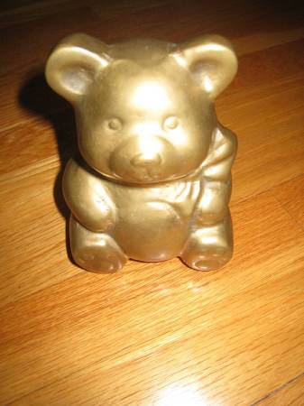 Vintage solid brass teddy bear coin slot piggy bank with bottom rubber plug