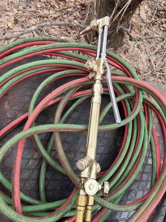 Victor cutting torch with 50 ft. Continental hose in excellent condition. Hose is 1/4 “. Both torch and hose are made in USA.